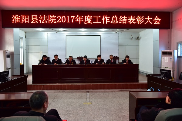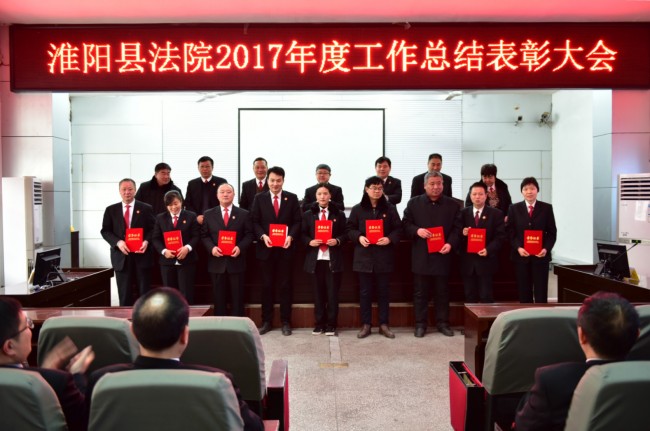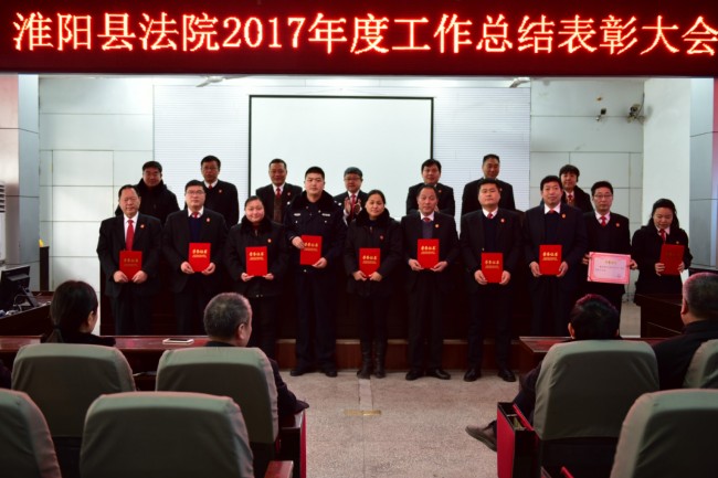 范闽杰院长对受表彰的先进集体和先进个人表示祝贺和感谢。范院长指出, 2017年是淮阳法院经受考验、拼搏奋进的一年,是辛勤工作、喜获丰收的一年。在县委的坚强领导下,院党组团结带领全院干警,紧紧围绕“努力让人民群众在每个敌法案件中感受到公平正义”的目标,忠实履行法定职责,全面深化司法改革,切实强化队伍建设,不断提升审判质效,各项工作取得优异成绩。