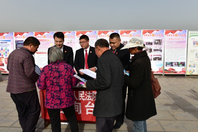 2018年4月15日是第三个全民国家安全教育日,淮阳县人民法院在太昊陵广场组织开展全民国家安全教育日集中宣传活动。