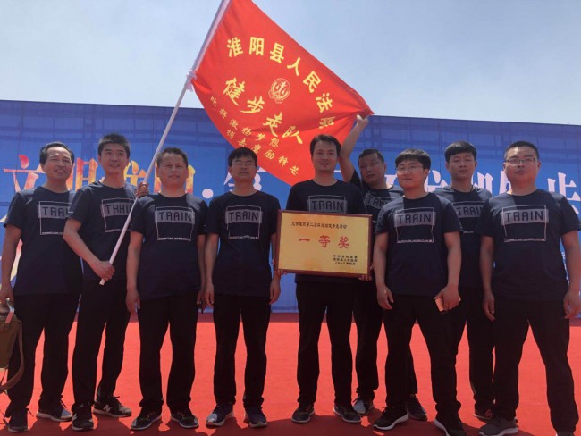 淮阳法院健步走队在副院长陈俊勇和副书记刘喜杰的带领下,在各位参赛干警的顽强意志下,步伐矫健、整齐着装斗志昂扬,从进入比赛赛道就保持领先优势,一直将这种优势贯穿于比赛全程,充分展现了淮阳县法院人健康向上、奋勇争先的良好精神风貌。最后,淮阳法院以排头第一的速度迈向终点,勇夺一等奖。