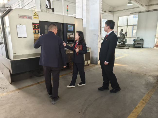 走访过程中,法官们深入企业生产车间和办公区域,实地察看企业运营状况,并与企业负责人进行深入座谈交流。刘芳庭长结合审判实践中常见的涉企经济纠纷、职务犯罪预防、商业秘密保护等典型案例,以案释法帮助企业增强法律意识,引导企业建立法律风险内部防控机制,从源头减少和避免法律纠纷发生。