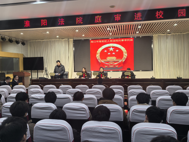为切实增强青少年法治观念,从源头上预防和减少高校学生参与信息网络犯罪活动,11月18日,淮阳区人民法院将一起帮助信息网络犯罪活动罪刑事案件的庭审现场,“搬”进了淮阳区职业中等专业学校多功能报告厅。300余名师生现场旁听庭审,“零距离”接受法治教育。