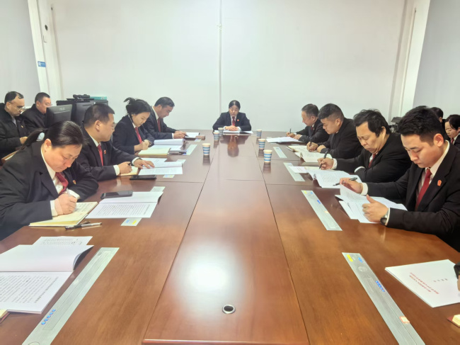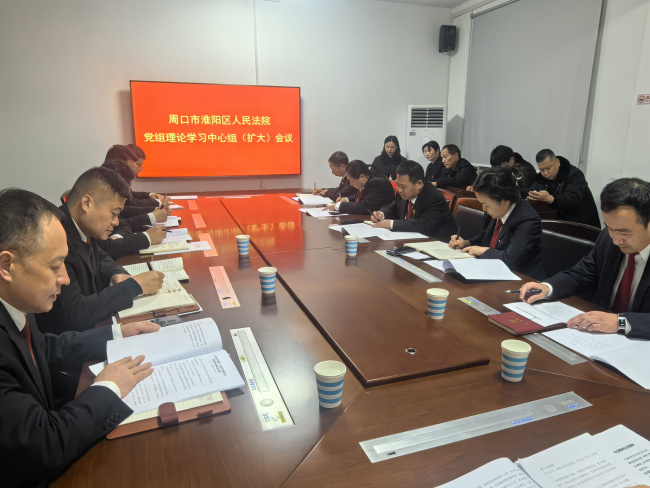 12月10日下午,淮阳区人民法院召开党组理论学习中心组2025年度第9次集中学习(扩大)会议,党组书记、院长陶陶主持会议,班子成员及各部门负责人参加学习。