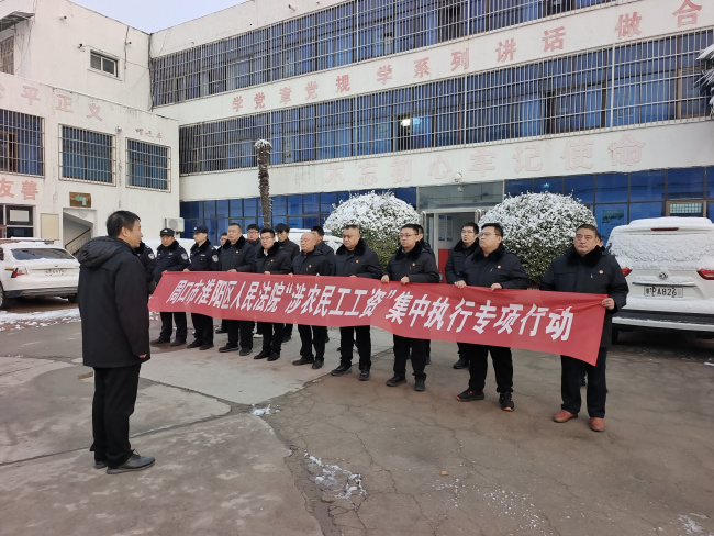 岁末寒冬,初雪悄然降临,却未能阻挡淮阳区人民法院执行干警坚实的脚步。12月13日,周六清晨6:30,干警们已整齐列队,在党组成员、副院长曾晓飞作动员讲话后,迅速奔赴各执行现场,展开新一轮集中执行行动。