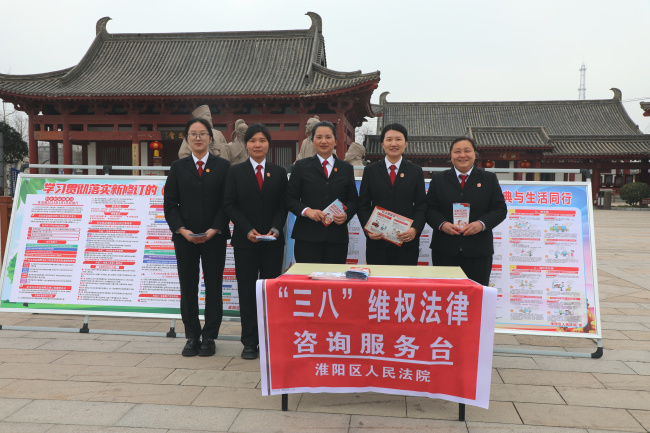 为进一步提升辖区妇女的法治意识和依法维权能力,营造尊重和保障妇女权益的良好氛围,3月6日,在“三八”国际妇女节来临之际,淮阳区人民法院组织女干警走进苏子读书园,开展“三八”维权法律咨询服务活动,将法律知识和维权服务送到广大妇女群众身边。