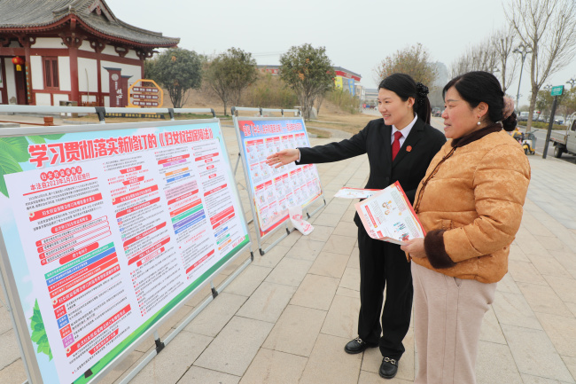在普法宣传过程中,干警们重点围绕《中华人民共和国民法典》《中华人民共和国妇女权益保障法》《反家庭暴力法》等与妇女日常生活息息相关的法律法规,结合婚姻家庭纠纷调处、反家庭暴力维权、劳务用工权益保障等群众普遍关心的热点难点问题,用通俗易懂的语言和生动的案例,深入浅出地讲解法律条文的具体规定。