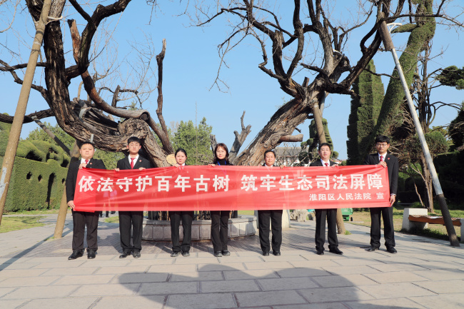 太昊陵景区内,千年古侧柏苍劲挺拔、虬枝苍然,每一道年轮都镌刻着千年文脉,也是淮阳文旅的重要标识。法院干警联合人大代表、景区工作人员,开展古树名木专项巡查,将司法服务延伸至文旅一线。干警与人大代表逐树勘察,细致查看古树生长状况、保护标识及周边管护措施,现场研判长势、共商复壮方案,以精准司法守护古树名木安全。
