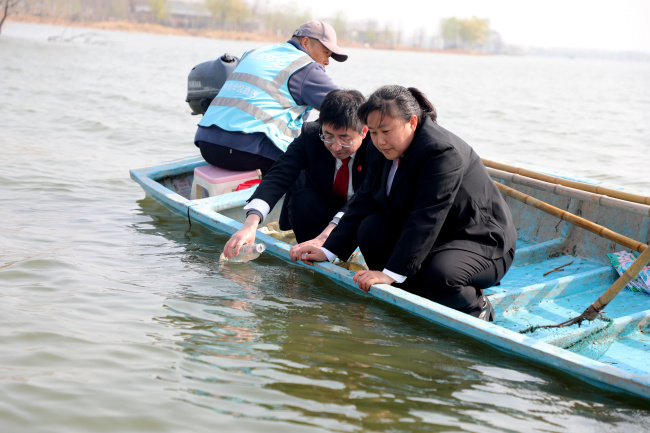 龙湖作为淮阳文旅的核心底色,其生态安全是文旅产业可持续发展的关键。近日,淮阳区法院环境资源审判庭干警立足沙颍河廊道生态审判职能,乘船深入淮阳龙湖国家湿地公园核心水域,开展生态司法护航文旅发展专项行动。