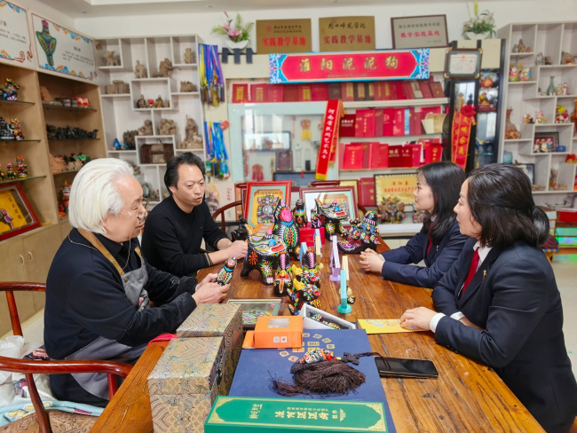 近日,刘振屯法庭干警走进国家级非遗泥泥狗代表性传承人许述章及其子许品的家中,只见案几上摆满了各式“泥泥狗”,黑底之上红黄青白四色点缀,草帽老虎、人面猴等造型栩栩如生。